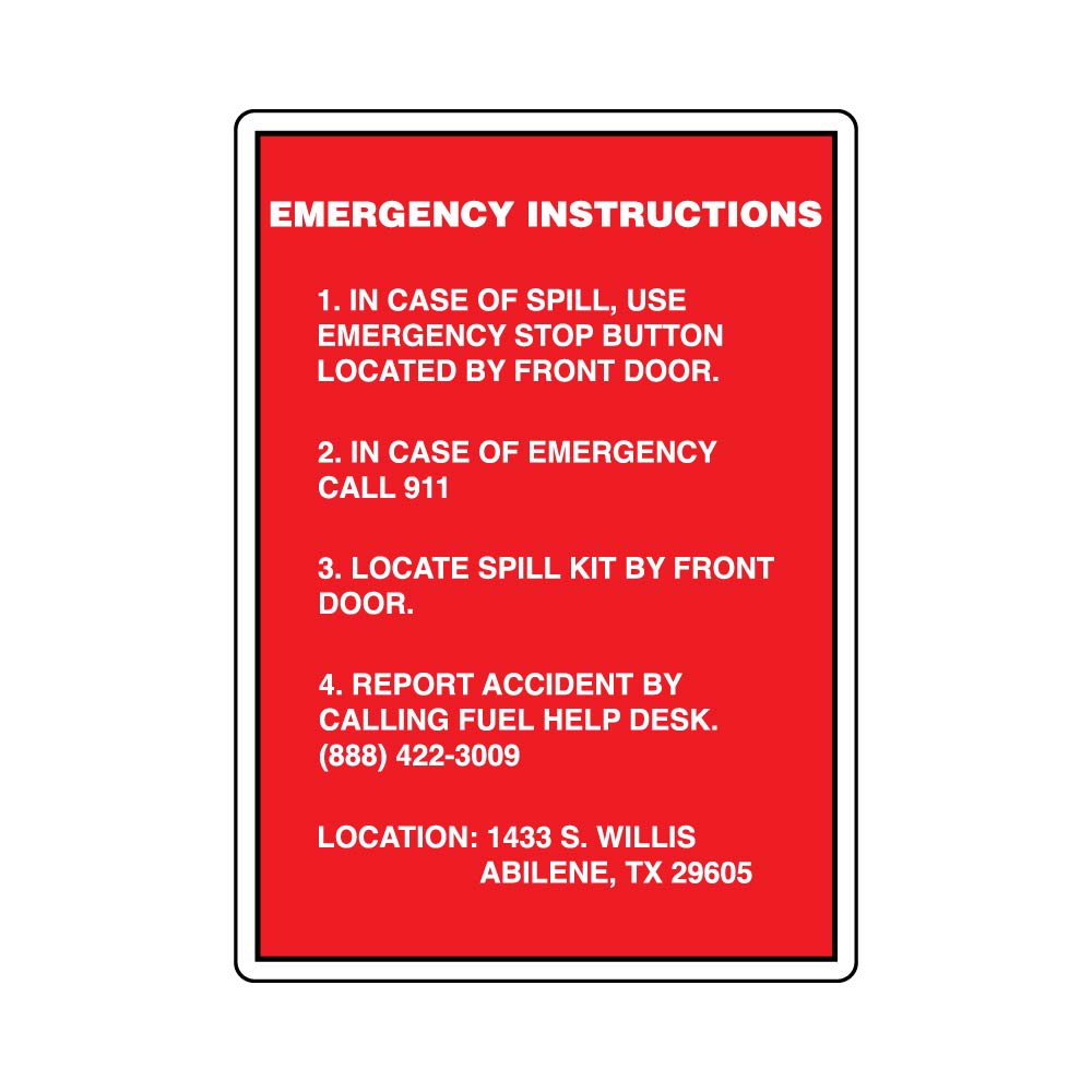 5x7 Emergency Instructions White/Red